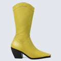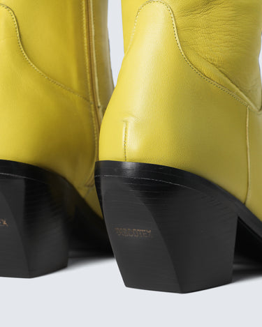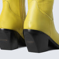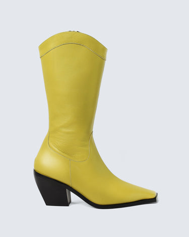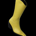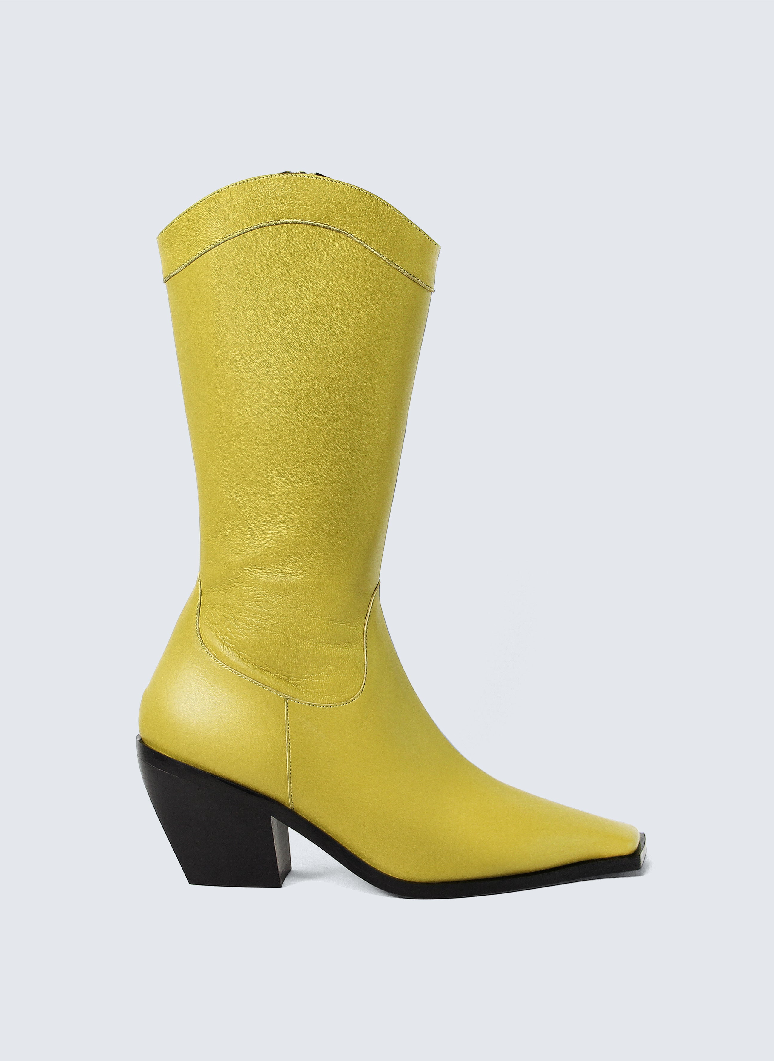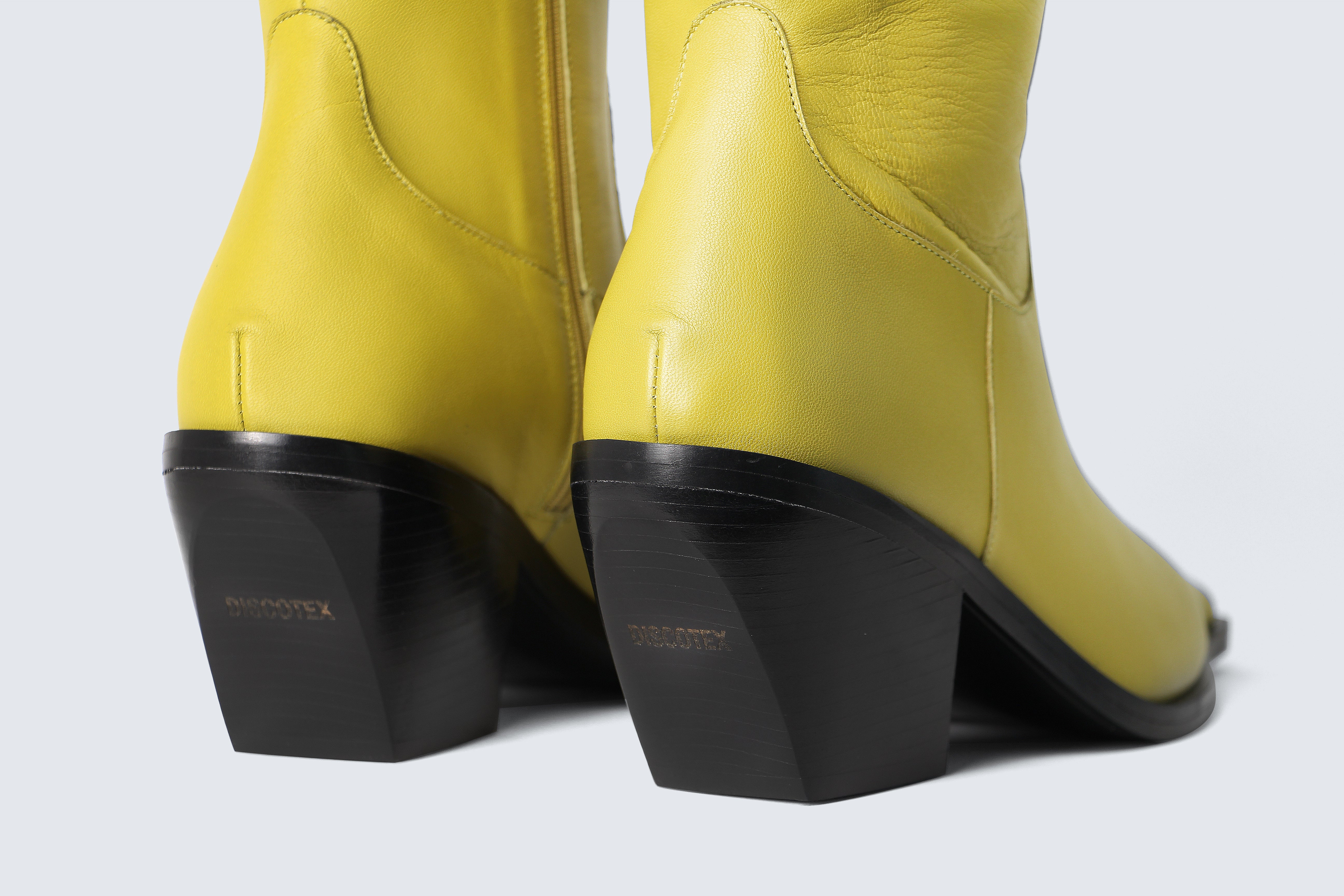 leather and built on a 75 mm solid wood heel wrapped in leather, it features the Discotex logoengraved on the heel and a sleek, sharp upper that hugs the leg mid-calf. The fully leather-lined interior hides a memory foam insole for unexpected comfort perfect for long nights and bold exits. Internal zip and the signature square toe, exclusive to Discotex, makes it instantly recognizable.